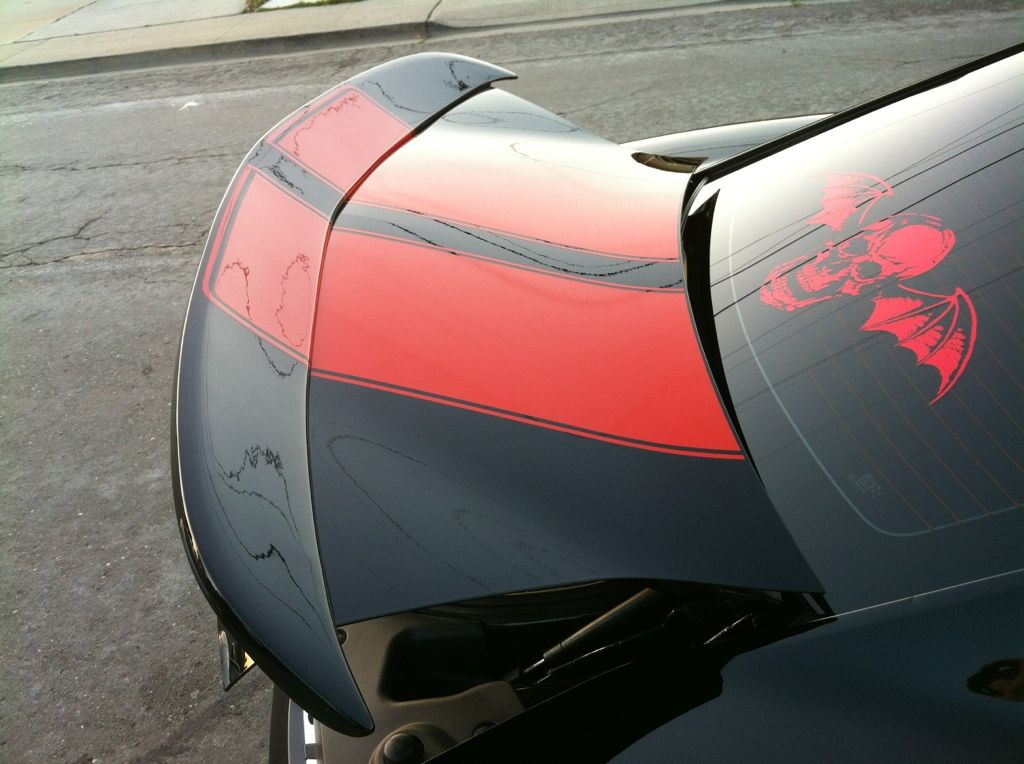 Finally got my hood and spoiler finished painted and I love both of them. The hood looks hard yet subtle. I felt the mpd1 spoiler was too wide and the dovetail is fugly imho. I was worried after reading a lot about hood alignment issues, but mine turned out great! I'll let the pictures do the talking.