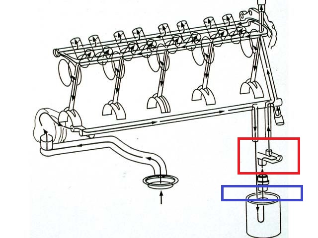 https://www.camaro5.com/forums/showthread.php?t=381050 I believe how many wires going to the sensor is irrelevant, because the PCM's output to the DIC is not a true reading. A factory 4 gauge pack may show otherwise, but either way, with what I found, the Mishi alone wasn't enough. And that was with the Autometer probe at the area shown below in the red square using the above bypass adapter I showed in my previous post. No, I am not measuring the oil before the cooler. As you can see oil flowing at the bypass adapter is on its way to the bearings. And in my case by using an oil filter sandwich adapter (at the blue square) to send oil to and return from the oil cooler the oil is cooled and filtered at the bypass adapter (red square) ready to rock n roll.
