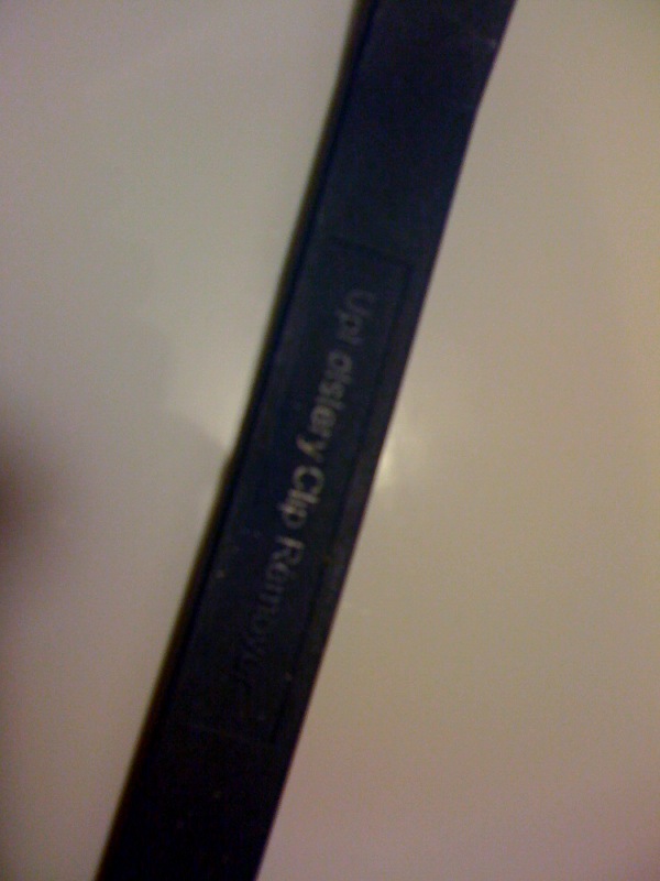 I was using the Dyson on the passenger floorboard and turned to clean under the passenger seat. As I cleaned something fell on the nozzel. To my suprise it was this. It reads "Upholstery Clip Remover" and both ends are scared and pitted. Has anyone else found one of these? Do they put one in every car or did I get a gift from the factory???