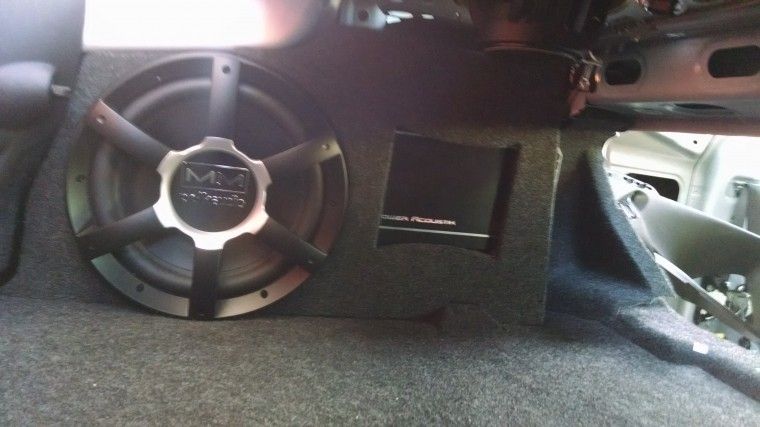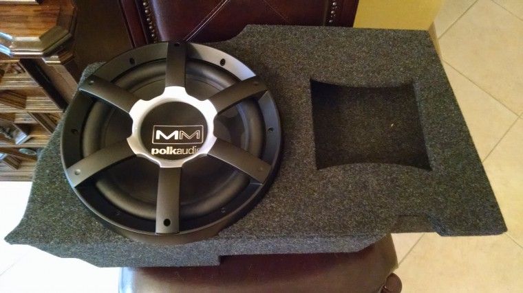 I had to dremel the bottom of my subwoofer grill because the Polk grills are a bit oversized. Once I did that it was easy to drop the box in place in the trunk.