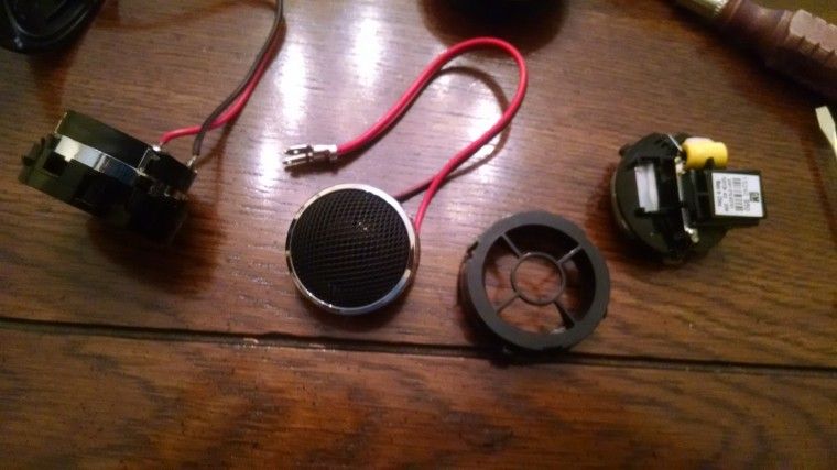 Remove the factory tweeter by unlatching it.