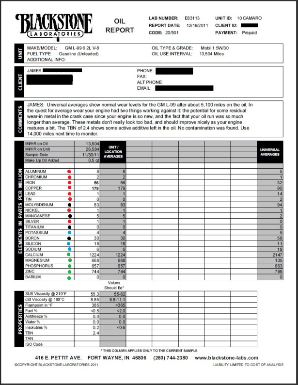 To start off, I am not an oil expert and never have claimed being one. I have just done my homework and research for the better part of five years now. I know what works in my Dodge Cummins doing 25,000 mile oil change intervals. Now I have the proof that the Camaro is living a happy life using the OLM. For the non believers and naysayers, this is black and white. There is no other way to get any better proof on how the oil held up and to show that the oil still had life left in than doing an oil analysis and seeing the proof. I hope this post is beneficial to some and will ease the reservations people have on actually using the OLM for its intended purpose. To those that stay “weary” or still can’t or refuse to grasp the OLM system when the proof is in black and white, keep on wasting your money. I am starting to sound like a broken record here on C5, but GM has spent millions of dollars, countless hours and a lot of resources perfecting the OLM system. You gain more than you lose by following the OLM. Do I feel like a guinea pig for what I did by going the “whole” length of the OLM (13,504 miles) and spending the money on an oil analysis? Not in the least. I had total faith in the system and the capabilities of Mobil 1.