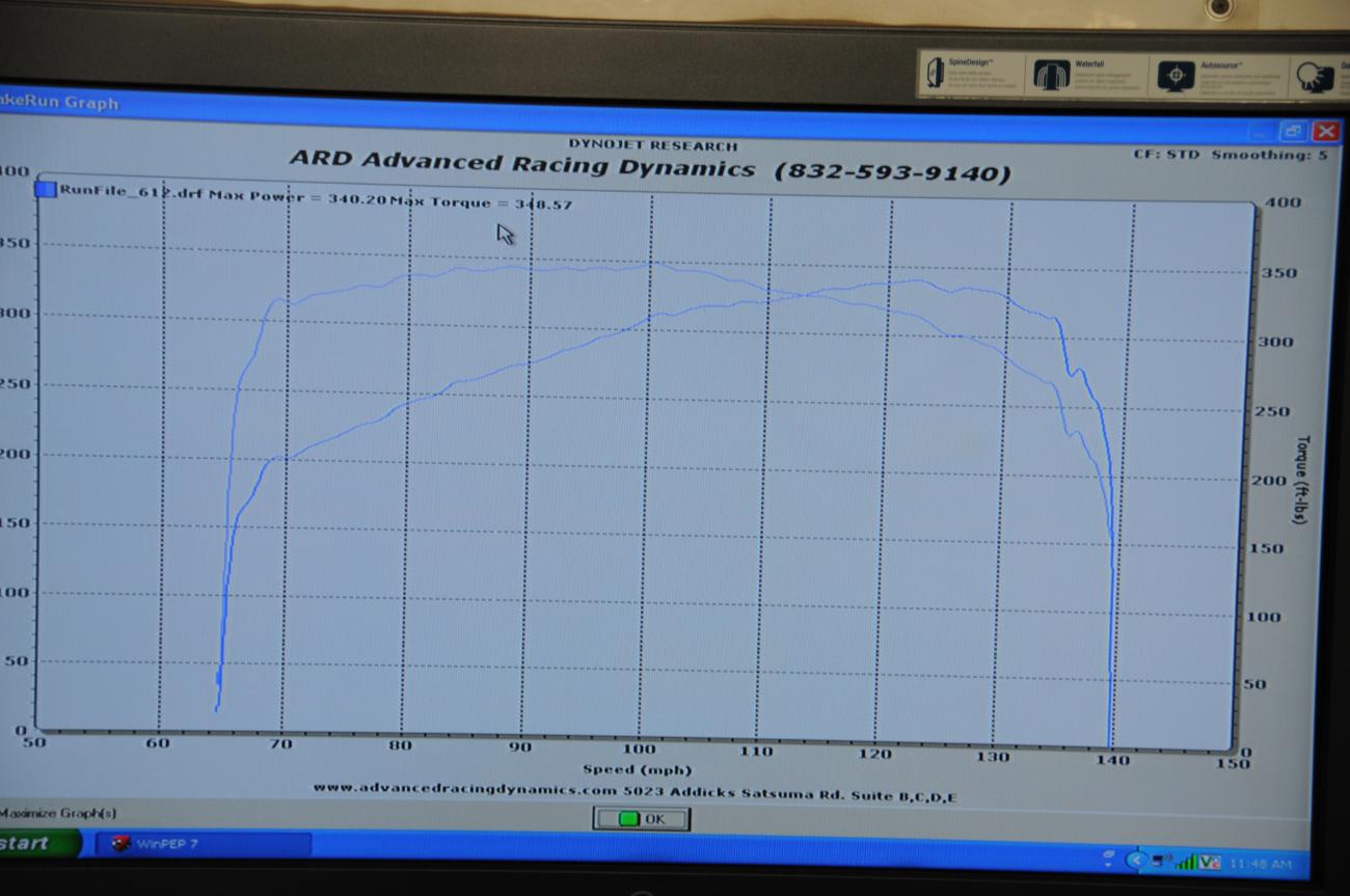 Looking at the numbers I would assume LS3. Anyway for those who wonder what the L99 with just the Cold Air Inductions will pull, with no tune, no after market exhaust, just stock with the CAI here are my Dyno numbers from this past weekend. There were quite a few people present and most of were impressed with my numbers.. I know results will vary.. But here are mine anyway. Was about 75 F outside here in Houston. This was at the H-Towncamaroclub dyno day at Advanced Racing Dynamics here.