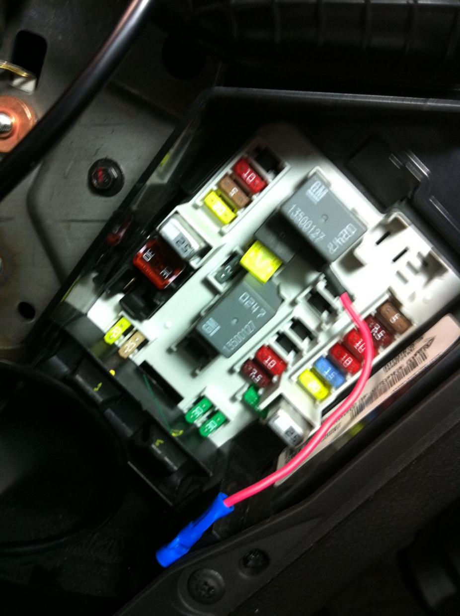When you cut the Black and Red wire to fit the area right by the fuse panel, keep it. You won't have enough wire to run all the way to the PCM wires. However, if you add on the wire that you cut off there is plenty. I used Black to extend the White wire and Red to extend the Green wire. Here are some pics of a Fuse Tap (I got from the local auto parts store) as well as a close up of the fuse panel. The fuse panel cover just pulls off by hand. You have to give it a good pull to get it off.