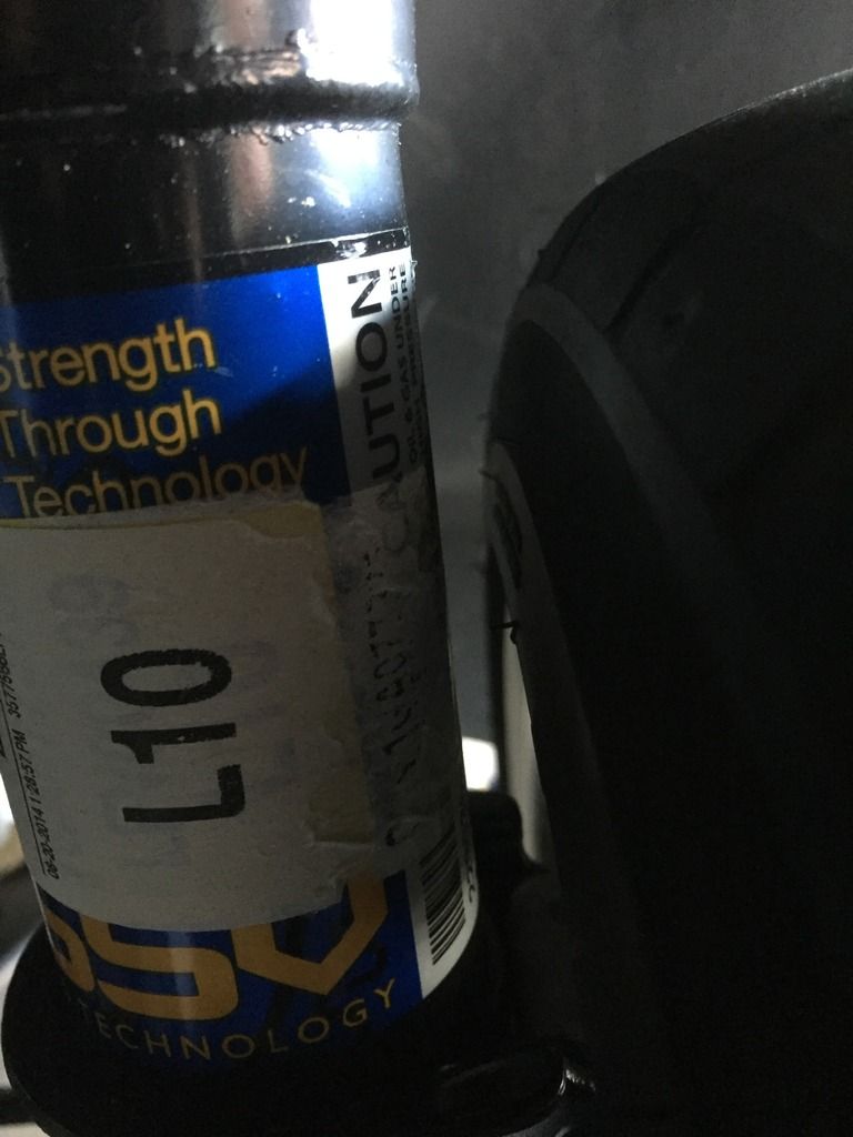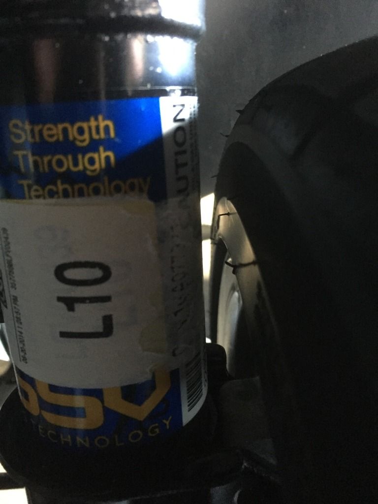 Below: stock OEM 19x11.5 rear on the front with BS-RE11 325, inner tire to strut clearance.