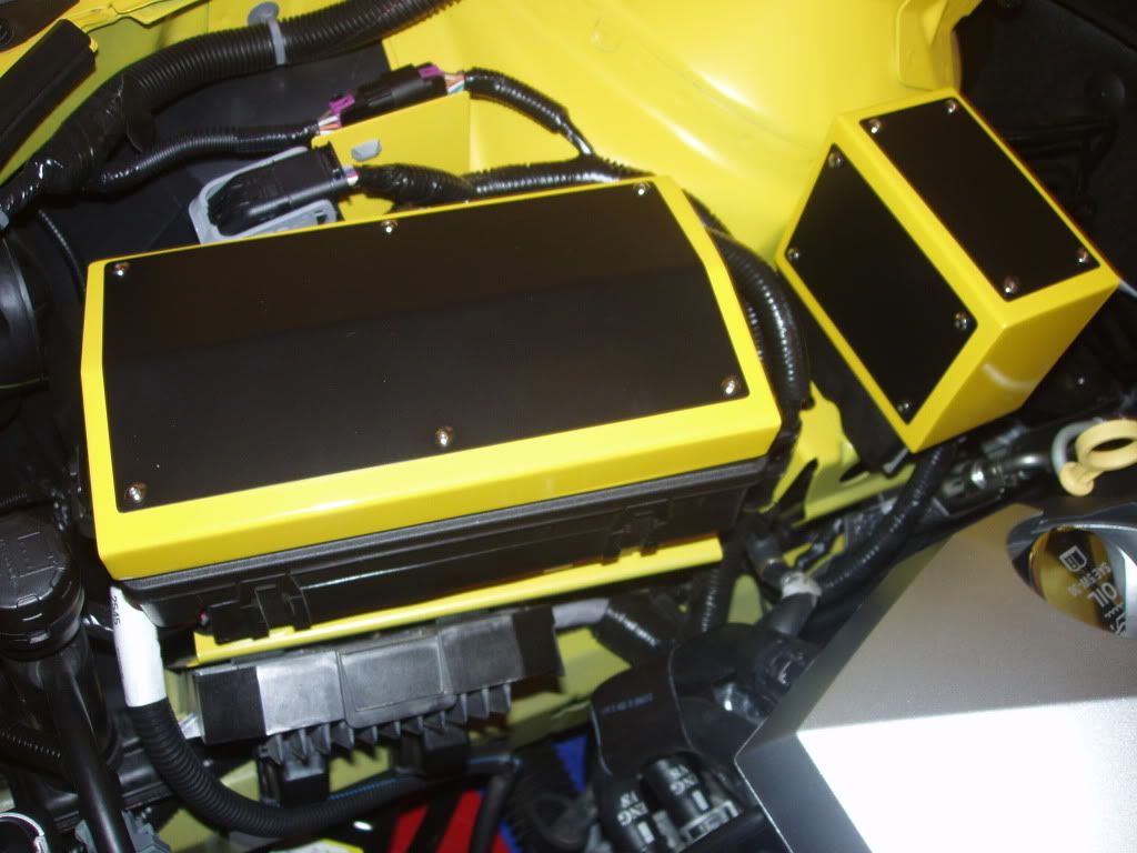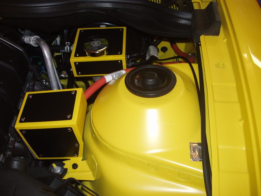 Here is another picture of the painted hood liner and a few of the rally yellow/black engine bay item covers. The painted engine cover should arrive next week.