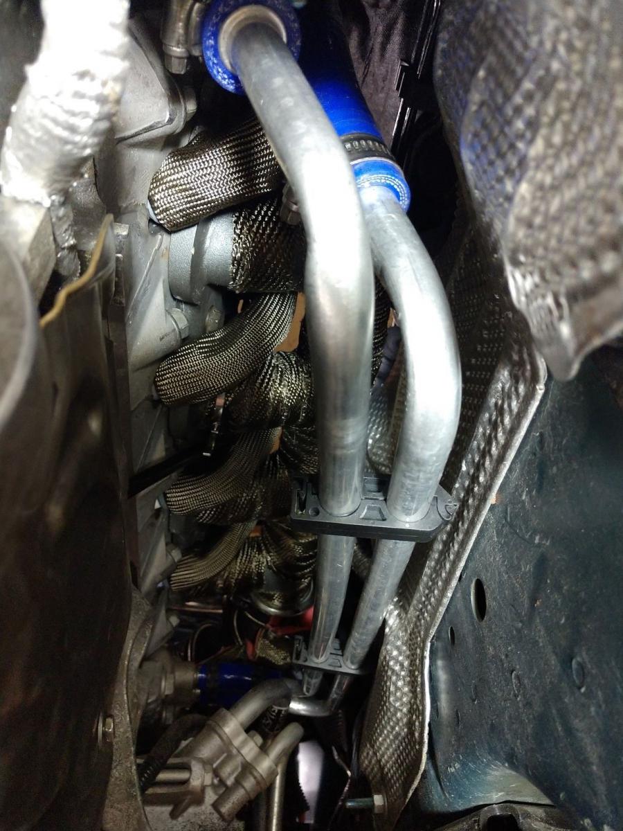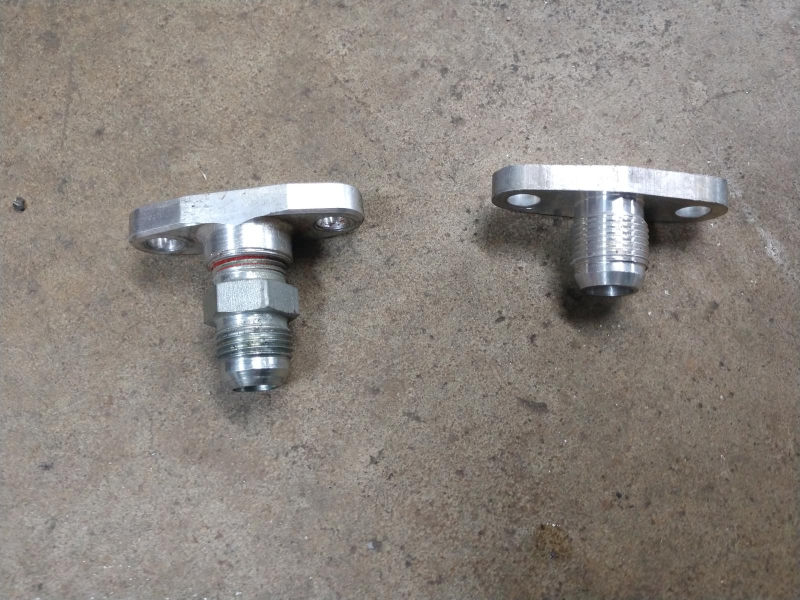 I had to change the turbo drain fitting to the extended one. With the short one piece fitting, you couldn't tighten the drain hose A/N line end. It hit the turbo housing. Extending it a bit was the cure.