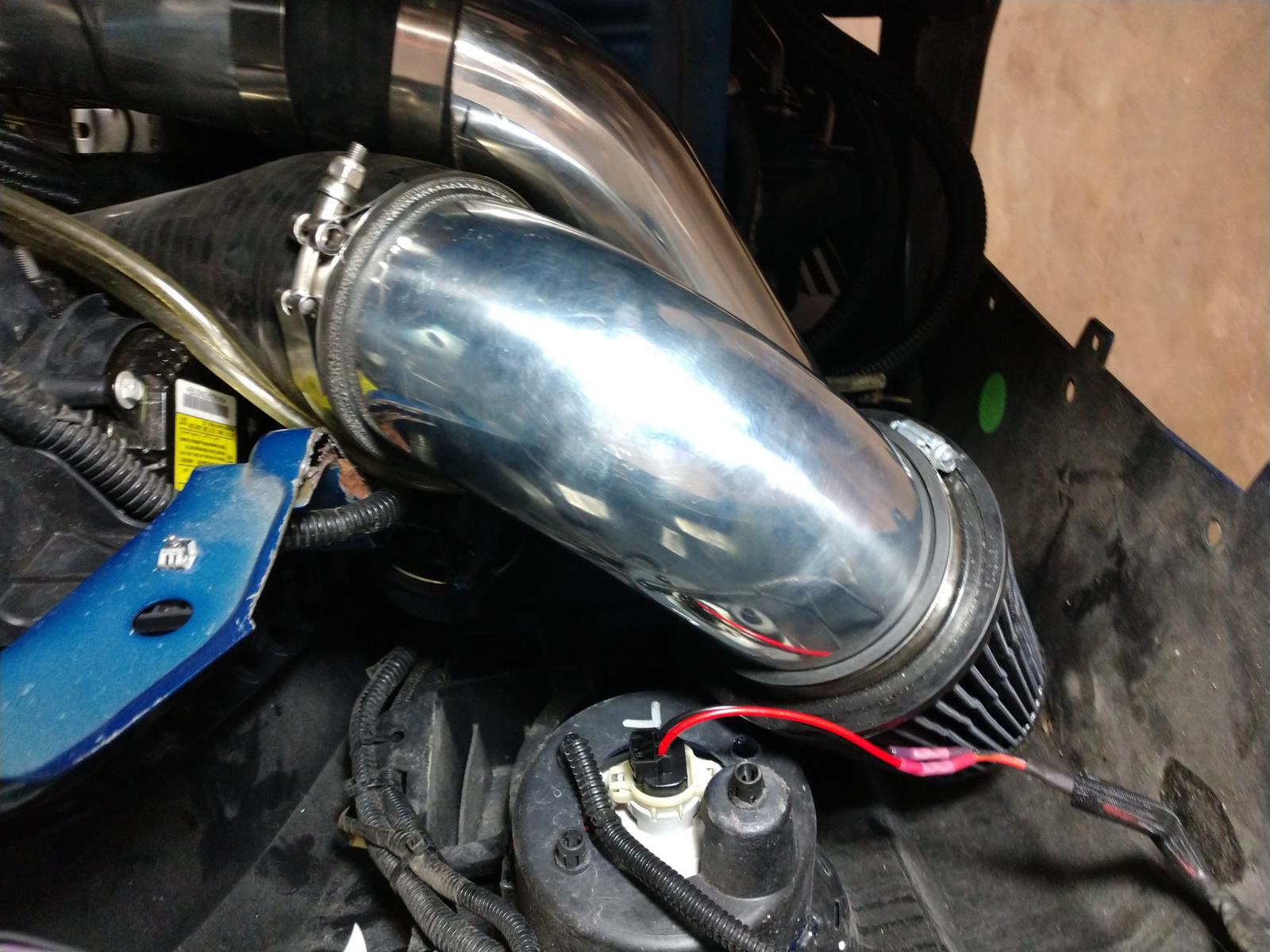 I ran mine the same way to the same KN filter. I used the elbow off my old CAI. That is one mighty tight spot to route some cold air my friend. Hope you enjoy yours.