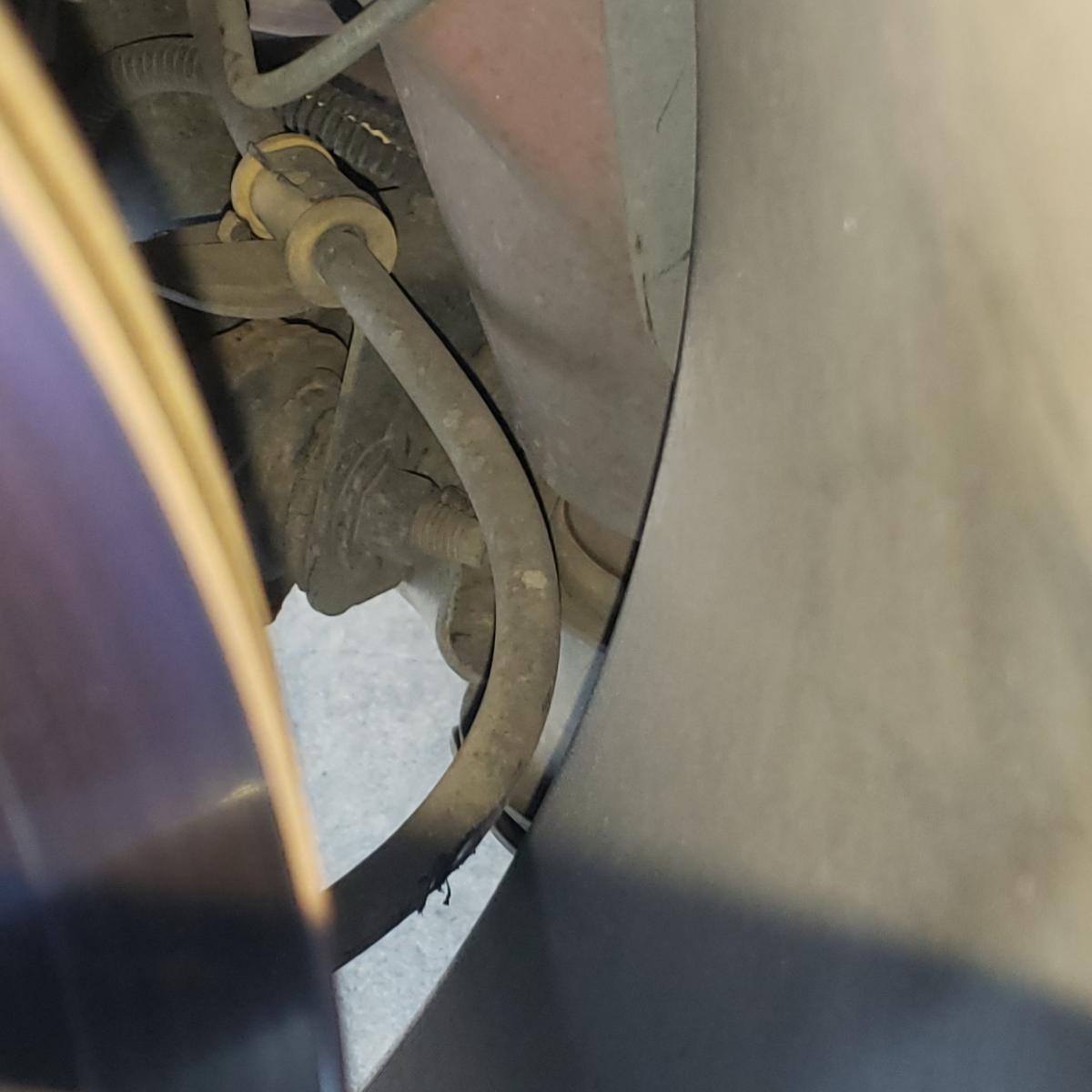 Hey yall I have 315s in the back on 11in rim and I found out they are scrapping. It took me awhile to realize this and I think I damage the wire pretty good. My question is I'm not to sure what wire this is? Can someone help me identify please?