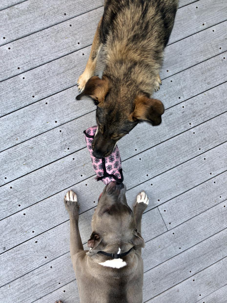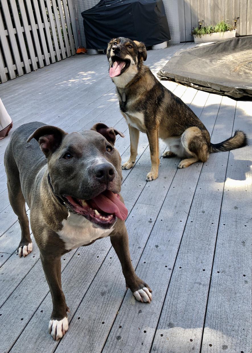 Left is Tala, she’s a 7 year old pitbull and the goodest girl ever. Right is Rogue, he’s a 1 year old Carpathian Shepherd mix. I found him wandering the streets near the base I was deployed to in Romania. Seemed like a cool dude so I took him back to America with me, he’s the biggest derp sometimes and definitely still adjusting to big city life. The pitbull loves to go for rides in my Camaro and sprawls across the backseat but the shep is terrified of how loud it is hahaha
