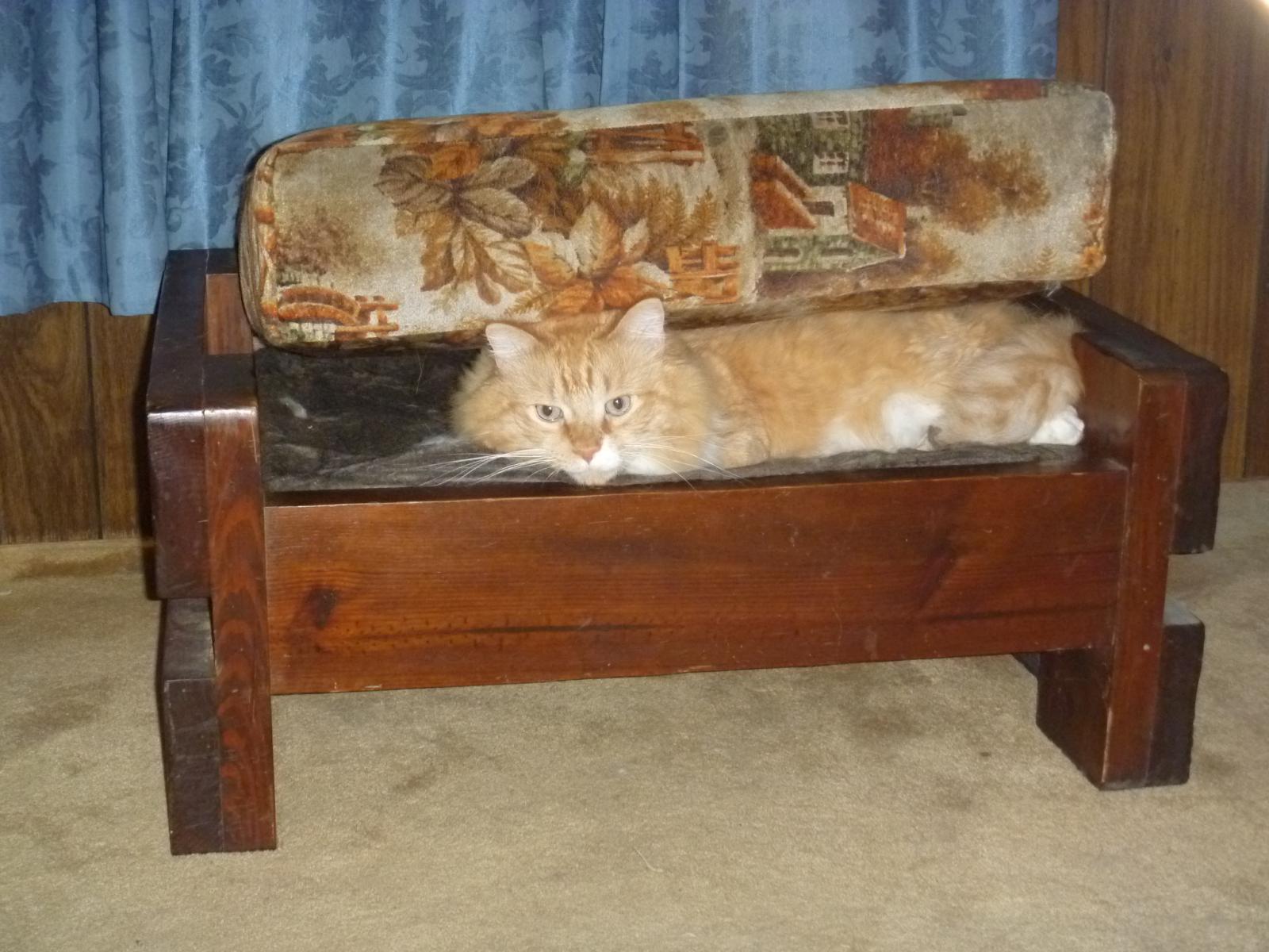 A broken cat that would rather rest under the cushion.