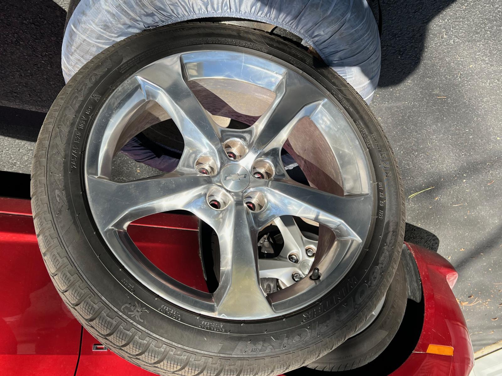 Pirelli Scorpion Snow Tires from my 2015 2SS Camaro Coupe. -Front 245/45 R20, Rear 275/40 R20 -Included tires, TPMS sensors, OEM wheels and wheel covers. Small blemish on one of the wheels (see picture) -Used for 2 winters on Cape Cod. -Local Pickup (West Barnstable MA 02668), or I can drop off to FedEx or UPS, but buyer must arrange for packaging and shipping. $1650 |
