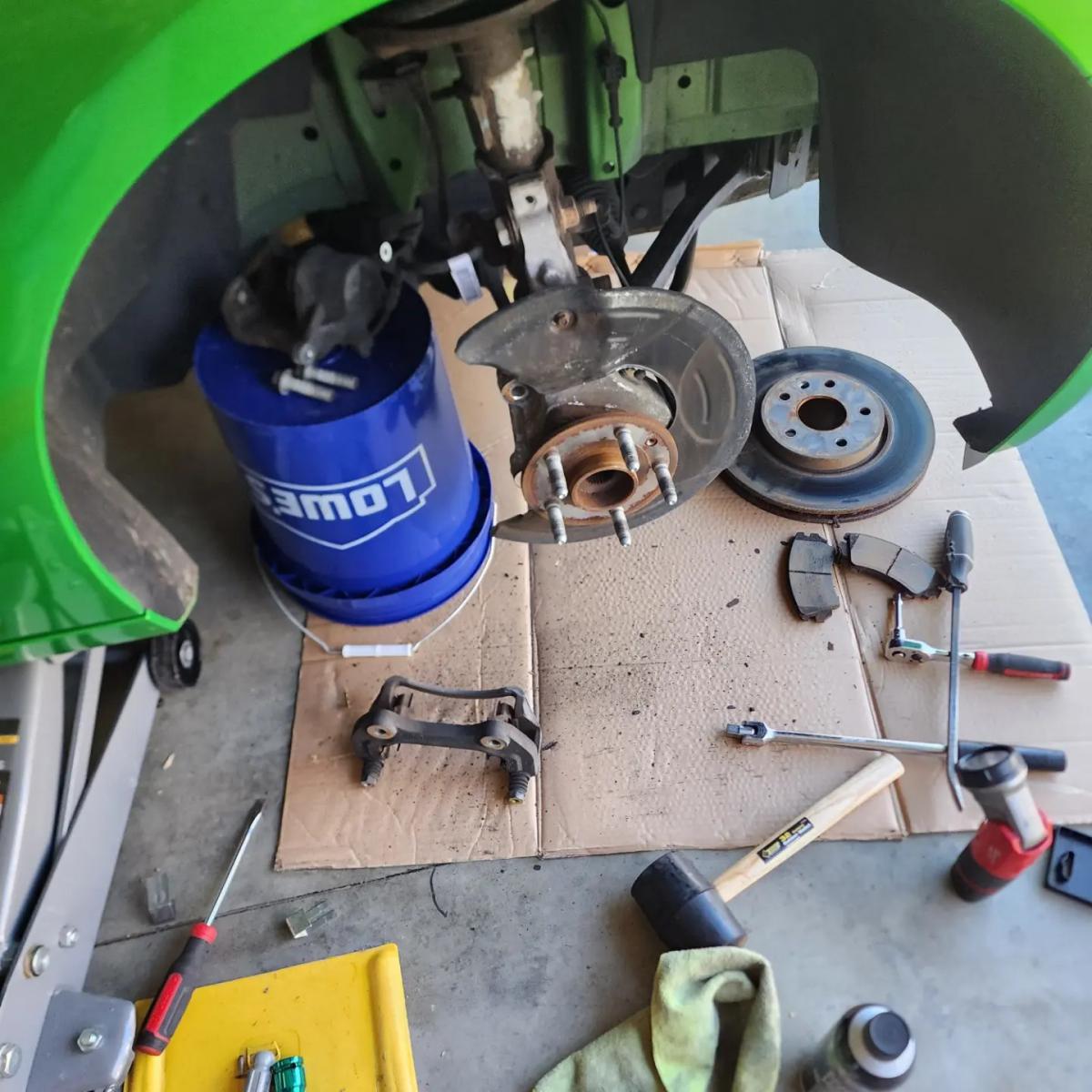 Installed my r1 concept cermaic pads and new rotors on the front. i installed all new hardware on the calipers and tonight ill work on the rears.