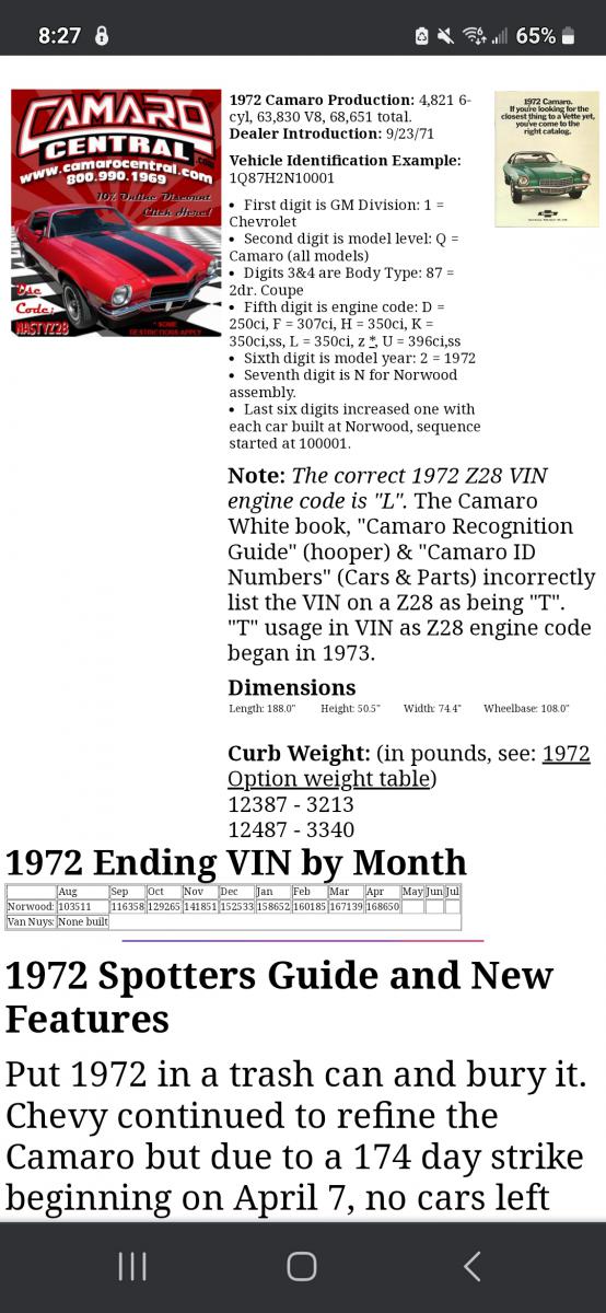 I Googled 1972 Camaro production dates and found this website, nastyz28.com. Note the Aug production VIN number. Also mentioned is a strike in April of '72. Since the car your looking at is probably commanding a premium price I'd proceed with caution.