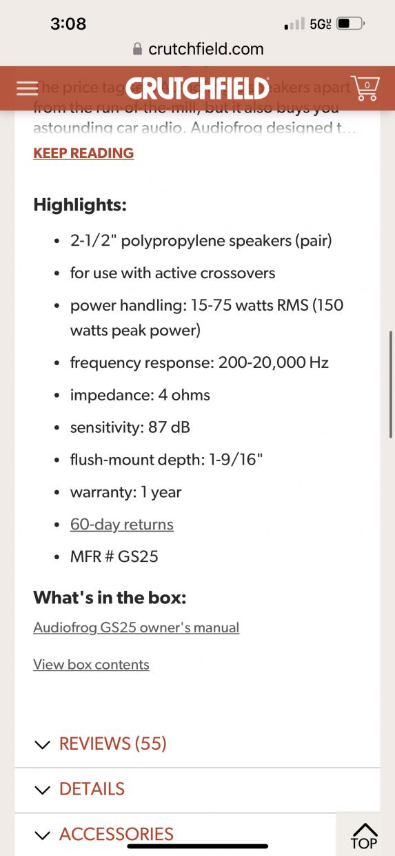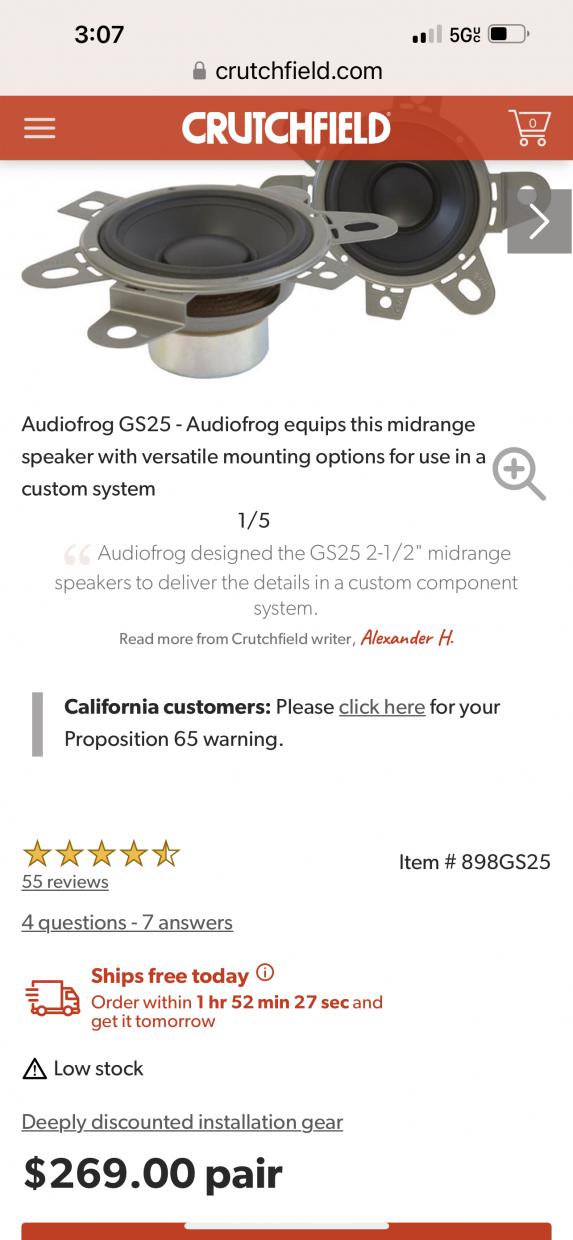 AUDIO FROG MID RANGE SPEAKERS GS25
