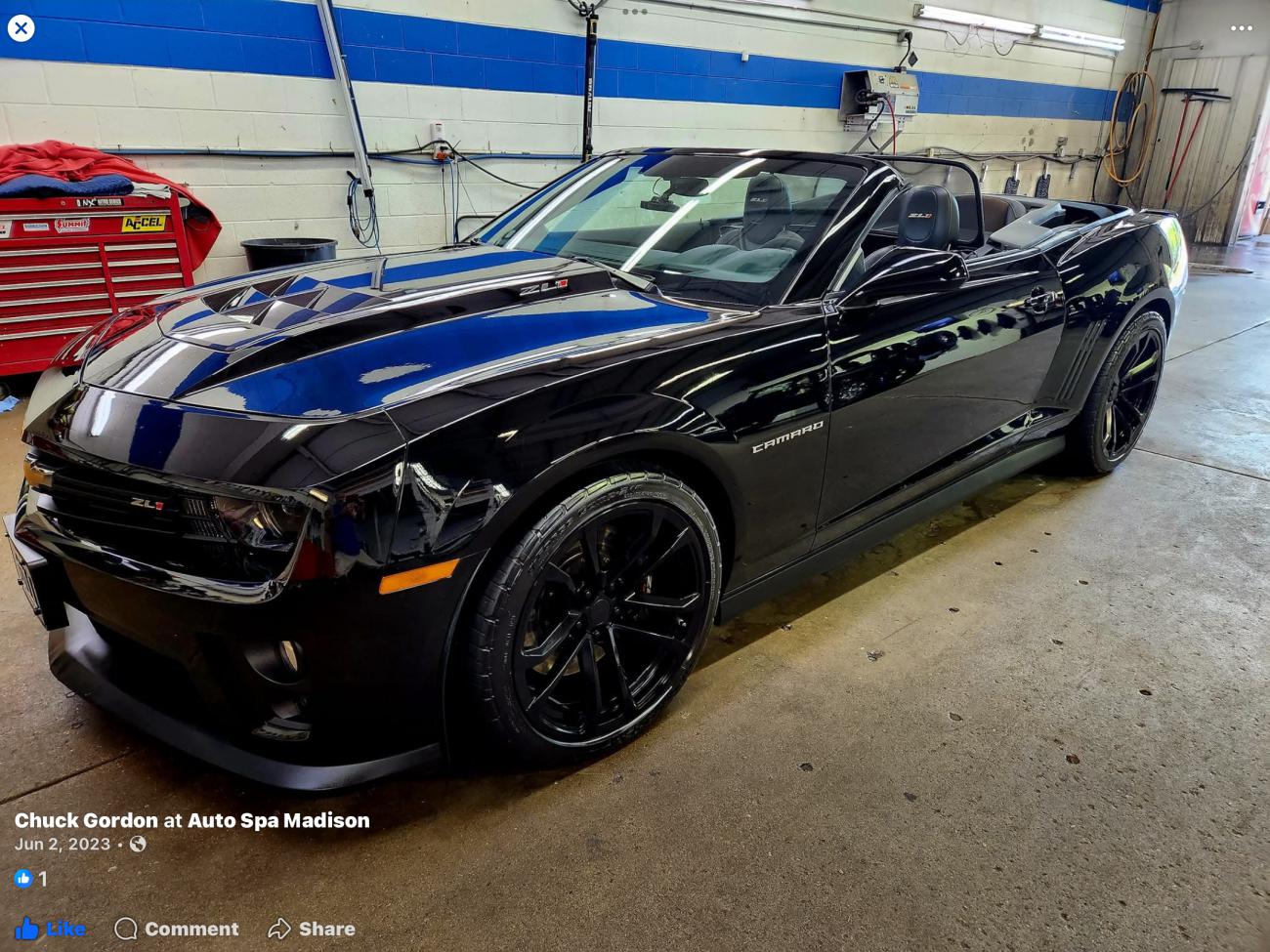 After owning my ZL1 since 2017, decided to make the investment in paint correction and CC, my guy sent this photo with the caption, “making black glass today”