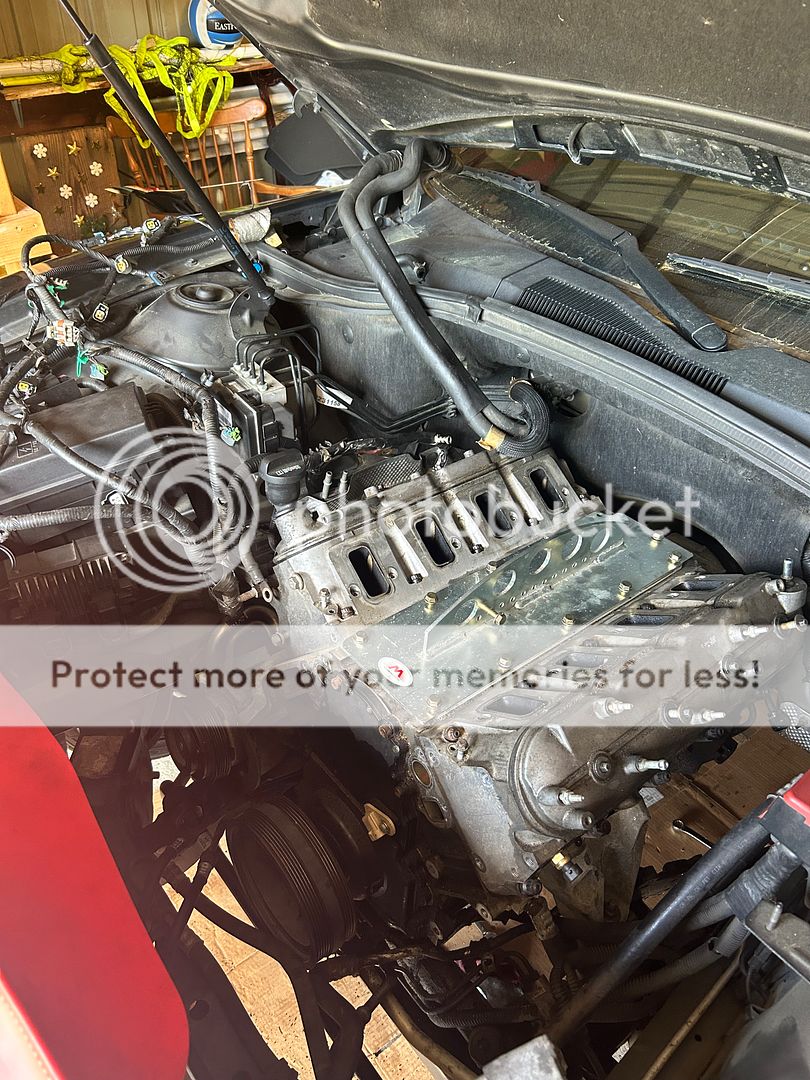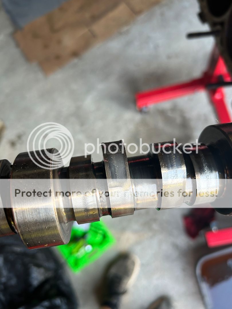 First, finding some place to do this was a chore. Now that I have a place to do it, we are making headway. Knowing that there’s metal in the oil, I started the teardown with the end goal of pulling the engine. I went right in and started removing exhaust, PS pump, water pump, alternator and a/c compressor. The a/c was the most trouble- there are more bolts holding that bracket on that you’d imagine. Here’s the engine ready to come out with a Motion race works LS lift plate in place of the intake manifold. ![]() Here you can see that the lift wouldn’t reach the engine. It was way off from the side. From the front it was closer but still couldn’t reach. ![]() I eventually had to take the bumper cover off and even then do some shenanigans to make it reach. Here it is out of the bay with the harnesses and a/c pulled back. ![]() ![]() With the engine on the stand (not pictured, but also a pain the butt) I dove into it. Plugs look good. Valve springs, rockers and push rods all look good. Houston- we have a problem ![]() ![]() This rocker won’t budge. It will spin ~45 degrees but doesn’t move in or out. Something’s wrong… whatever it is- it chewed up the cam. ![]() ![]() ![]() I’m assuming that’s the source of the metal in the oil. Probably didn’t spin a bearing, but hits highly likely they’re all toast with particulate being forced through the oil. |