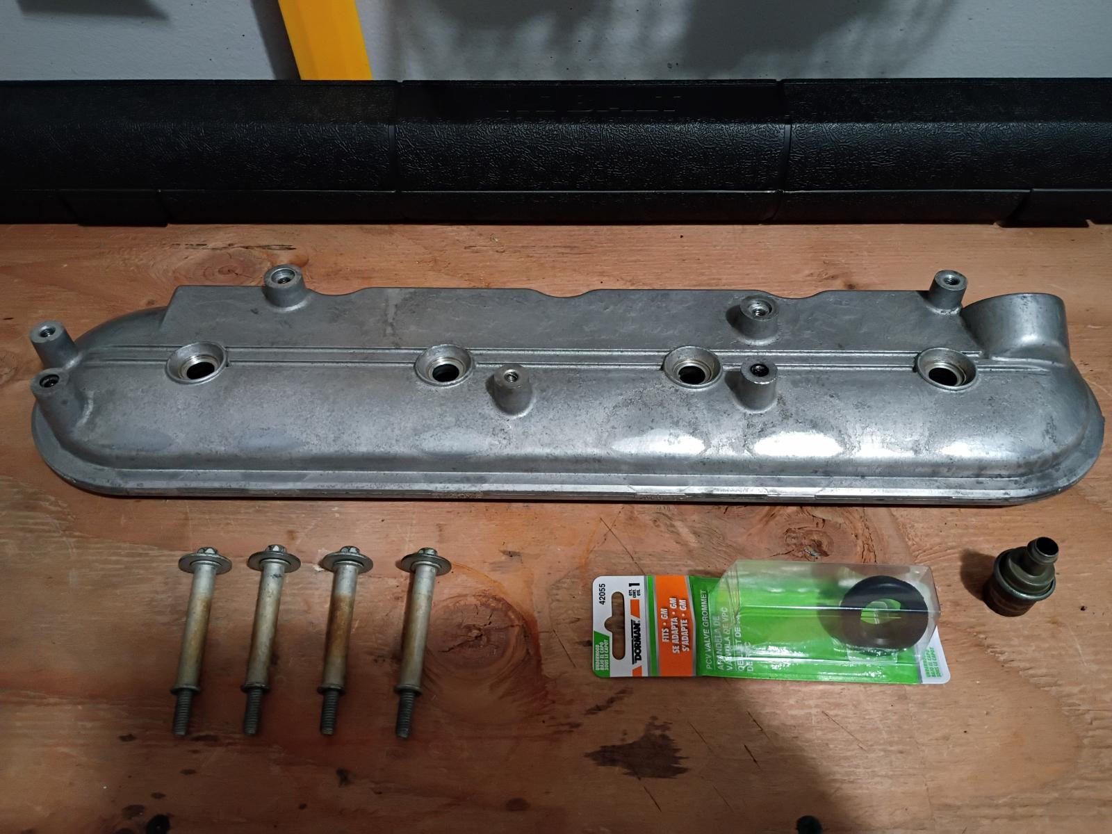 I also got the driver side valve cover and hardware cleaned up, procured the replacement PCV seal from Dorman (why is this not in the gasket kit Felpro?). Cleaned up the PCV as well, believe it or not, I think its the original and it seems just fine. I'll have this all re-installed by the end of the weekend and start test running my catch can lines.