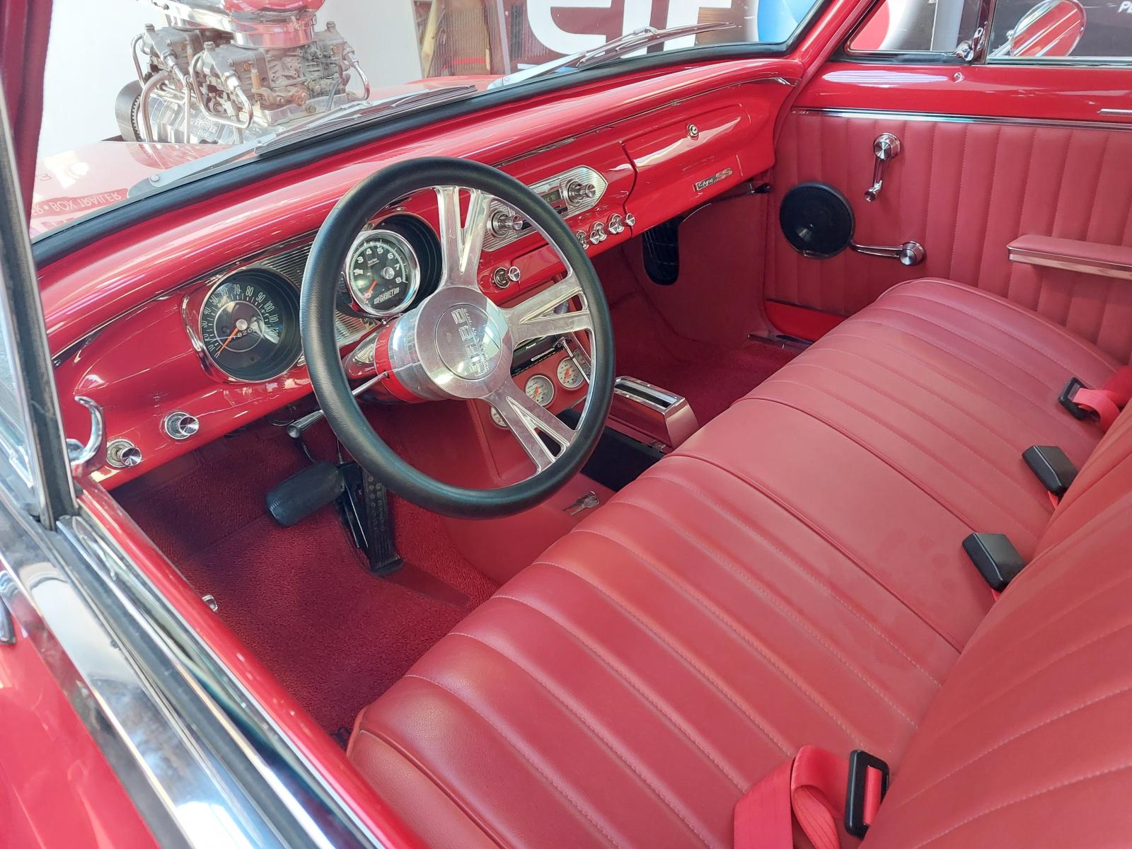 front end disc's, 9" Ford rear, 3" full pipes with rear cutouts. Custom billet wheels and steering wheel, new interior, full bare metal strip and rebuild to this absolutely beautiful condition!! no AC, NO power steering!.....Rubber burner!!!!!!