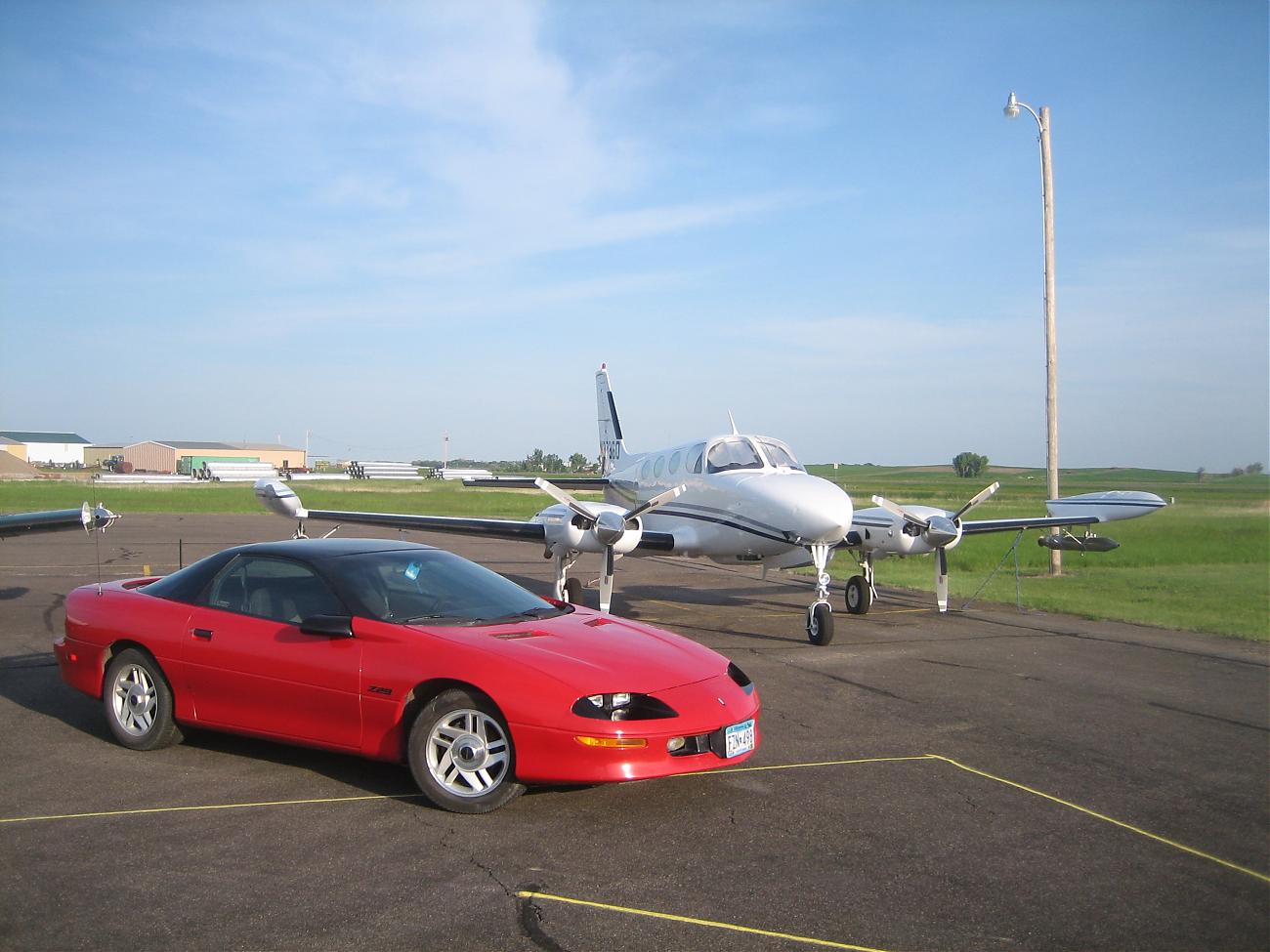 Since you were talking about snow.... This was taken early January after a foot of snow. The car is a blast to drive in the winter and North Dakota doesn't salt roads. The last picture was taken a couple weeks ago after I waxed my car. If you notice the "bombs" under the wing of the Cessna 340, they are actually acetone/silver iodide burners. I fly the airplane through thunderstorms (unreal awesome with heavy lightning) for a weather modification project. We use the chem. mix to do our best to increase rainfall while reducing the size of hail. Man I love my job....