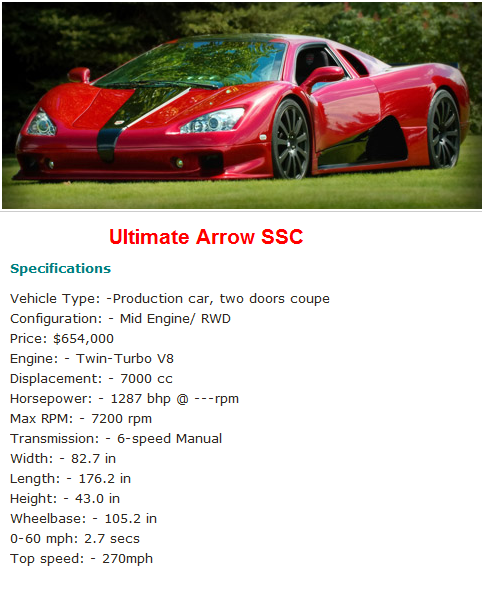 THe ultimate sports car in the world is the Shelby Aero Twin Turbo. And the fastest. |