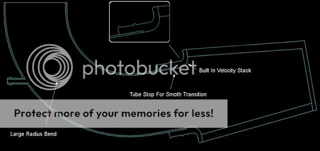 : One piece smooth bore (101.6mm) intake tube construction (this minimizes bends and restrictions within the system)