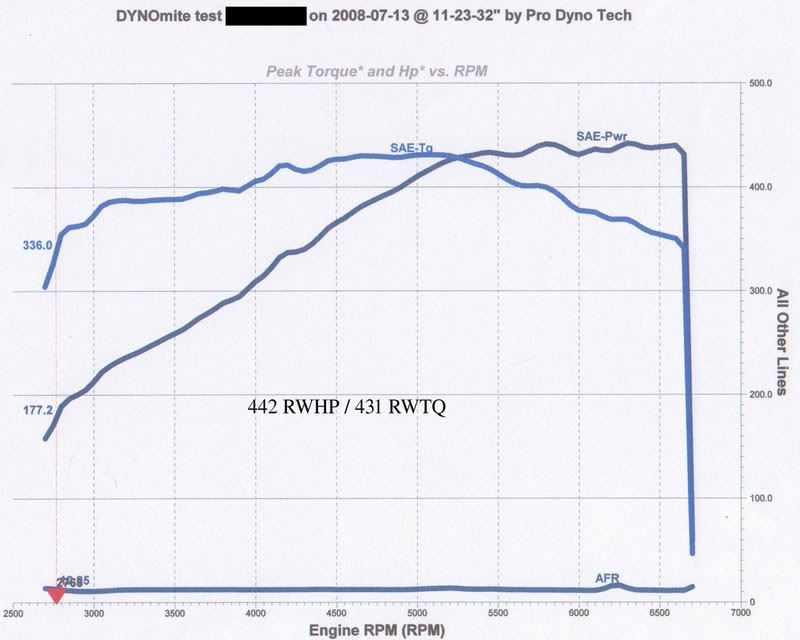 ![]() This is his girlfriend's C6. Same setup plus headers and a little larger pulley. ![]() ![]() ![]() And so on and so forth. Dyno graphs will always cross at 5252 because HP is always (no ifs, and's, or buts) calculated from torque.