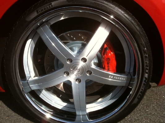 The wheels are D2Forged CV2's - Front 9x22 (265/30/22) and the Rear 11x22 (315/25/22). The engine compartment covers, custom engine cover for the Maggie, grille, scoops and smoked lenses were all done by Pete @ Showstopper.