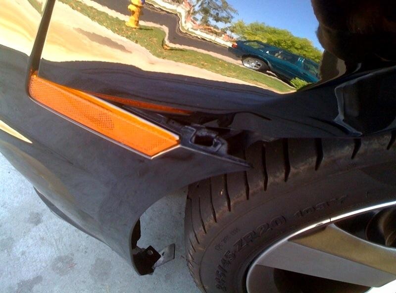 On the way home from work yesterday, a big rig lost a tire. With cars on both sides of me, I was unable to avoid hitting it. Here are the results: