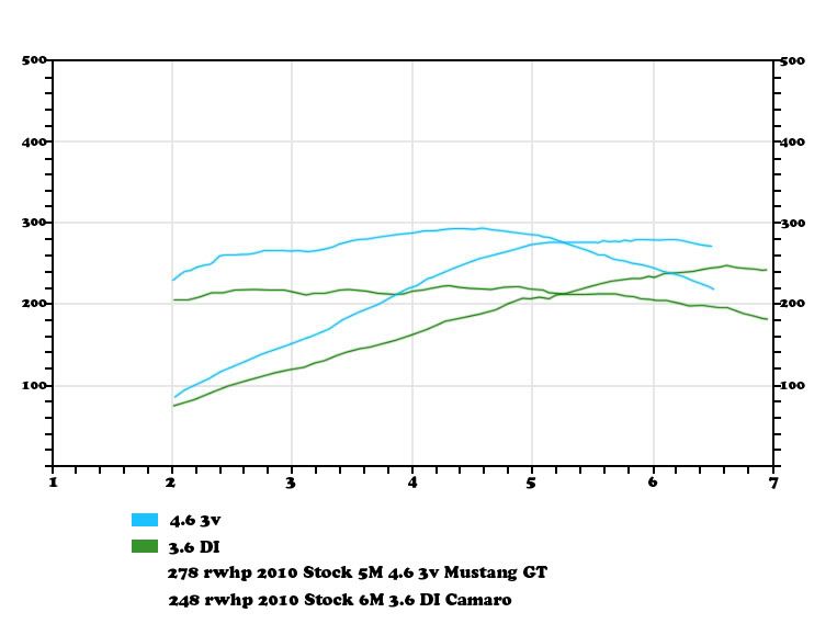I have experience with an 05 GT. While it's no match for an SS, a Camaro V6 would need a lot to beat it. They have about equal power, but the Mustang has a 50 ft/lb torque advantage, and about 250 fewer pounds. The Mustang's power band is also very wide, with it's power "peak" being more of a 1000 rpm wide plateau, (it's basically at peak power anywhere between 5000 and 6000 rpm), which is why it's good for better 1/4 mile times than you'd normally expect from a 300hp, 3500lb+ car.