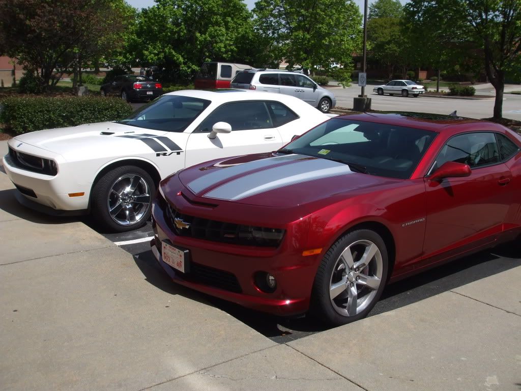 one morning i pulled into the lot and someone beat me to my normal spot so i circled looking for another suitable spot and noticed a guy sitting in his challenger on the street right outside the lot (a lot of people prefer the parallel park) staring at me. so i came out the lot, busted a u-turn and came up behind him to park. as soon as i pulled up he jumped out his car grabbed his stuff and yelled out "nice car bro!" i laughed and told him how much i loved the challenger as well and we rode the train into work and talked about the camaro the whole time lol i had to shift the focus of the convo onto the challenger. he said "i saw you pull into the lot and i thought to myself, neh he doesnt want to do that..." now we park back to back everyday, this was about a week ago...