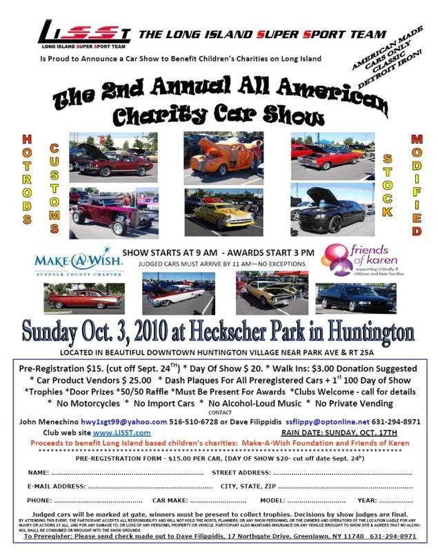 Charity Car Show October 3rd. @ Hekscher Park in Hungtington LI...