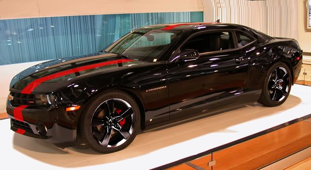 Can someone photoshop a real picture of a black 2010 Camaro 2LT with white rally stripes (factory ones)?