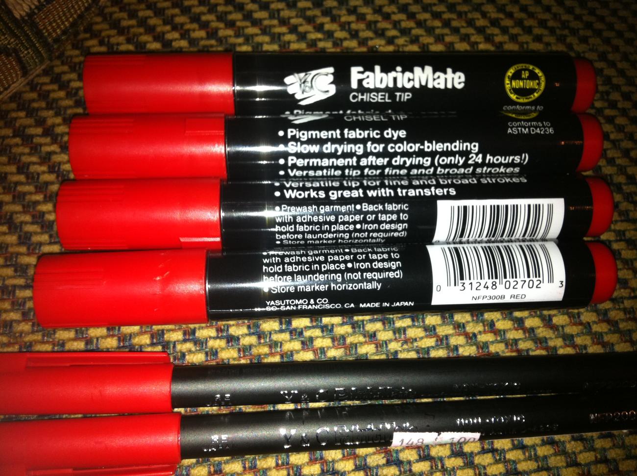 I used red "fabric mate" pens that i purchased at hobby lobby. they cost $2 a pen and i kind of went over kill and bought 6 when i probaly could have only used 1 or 2 . it took me and a buddy of mine a few hours. i think it turned out really well we would draw a few inches , wipe it with a damp rag, clean it with a dry rag and then repeat ( i included a video ) the dye wipes off really easy here are some pics along with a vid and feel free to ask questions