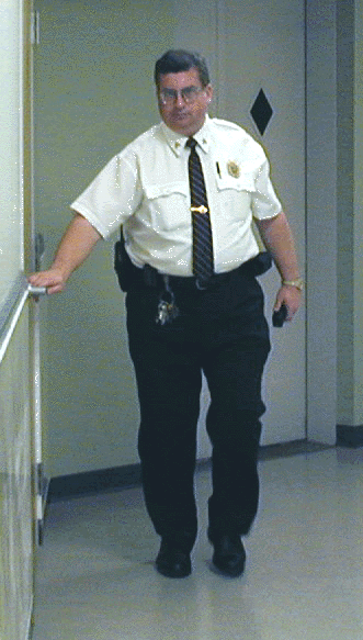 Shift Coordinator, Greg Norris, seen here patrolling the building, has worked in Security at Landmark Office Towers since 1994, starting out as an officer. A graduate of Myers College, Greg also holds his Ohio Peace Officers Training Certificate and two professional certifications from the International Foundation for Protection Officers (Certified Protection Officer and Certified Security Supervisor).