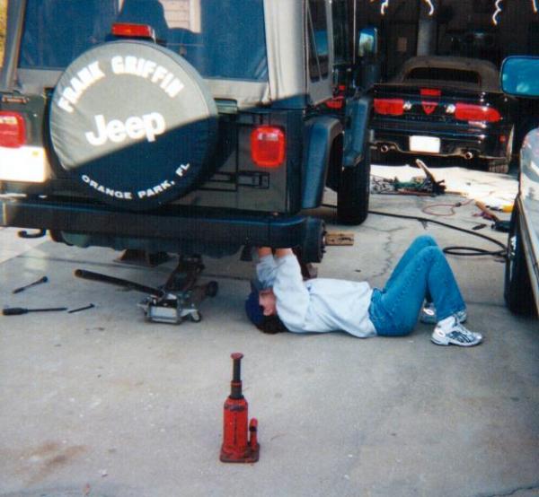 She loved my custom 97 step side. So we bought her a jeep wrangler, the first thing she said when we got home was "When do I get the lift and tires?" After wiping the dust out of my eye that was causing me to tear up, I finally said, "I lllloo uuvve you..." So, needless to say we are both looking forward to our next custom ride. The only problem we have right now is color. She wants victory red or yellow, and I want CGM and custom Paint. I think I'll win her over cus she loved the paint on my truck.... Luckiest man alive if you ask me.... Here's a pic of my wife helping a friend and I install the lift on her jeep.
