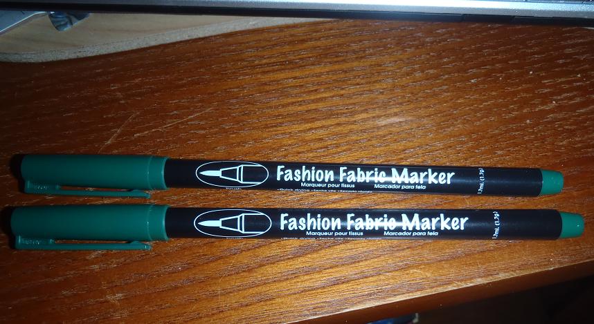 Here's some pictures of the green I've done so far. Also, I'm using the Fashion Fabric Markers. These are the fine point ones. I would have gotten a chisel tipped one, but the ones at the stores were either dried out already or the tip was smashed.