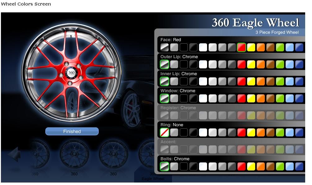 Hey Fellas, we spent the past year developing a wheel configurator that will not only let the customer view the wheels on their car but also to configure the wheels in all options first.