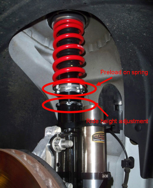 I just got off the phone with Randy. He's concerned because there is very little room between the ride height lock nut and the spring seat lock nut when the spring is snug without any preload...