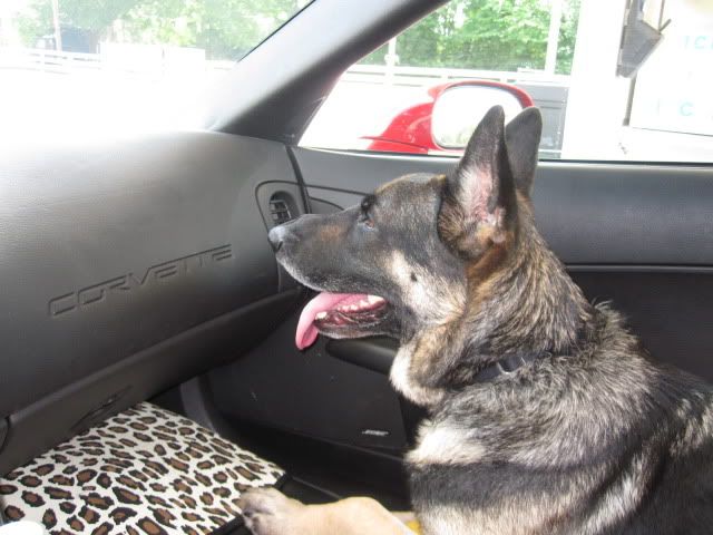Gotta agree with you there. ha!Can't find a pic of my GSD in the Camaro. He usually lays down in my other vehicles, but in the Camaro, he sits up, laying against the side and looking out the little window in the back. I've only had him in there on a few road trips where I wanted to take the Camaro. People drive by, then double take when they see his face in that little window! If I had leather interior, it would be fine, but I don't enjoy getting his hair off the cloth, and even with a blanket down, that will happen.I don't take him in the Vette often, either, but he does perfectly fine in there, and again, causes double takes when people look over and see him. ![]()