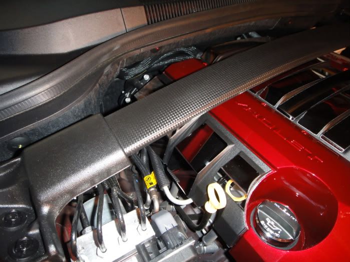 Painted flat black brackets. Adhesive carbon fiber wrap. The heat from the engine really shrink wrapped the adhesive very tight. Looks great in person. Here's how it came out:
