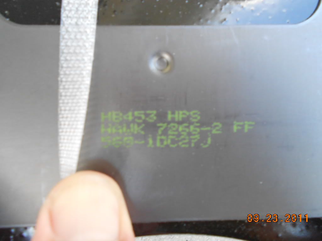 Front part number for Hawk PC: Part Number: HB453Z.585