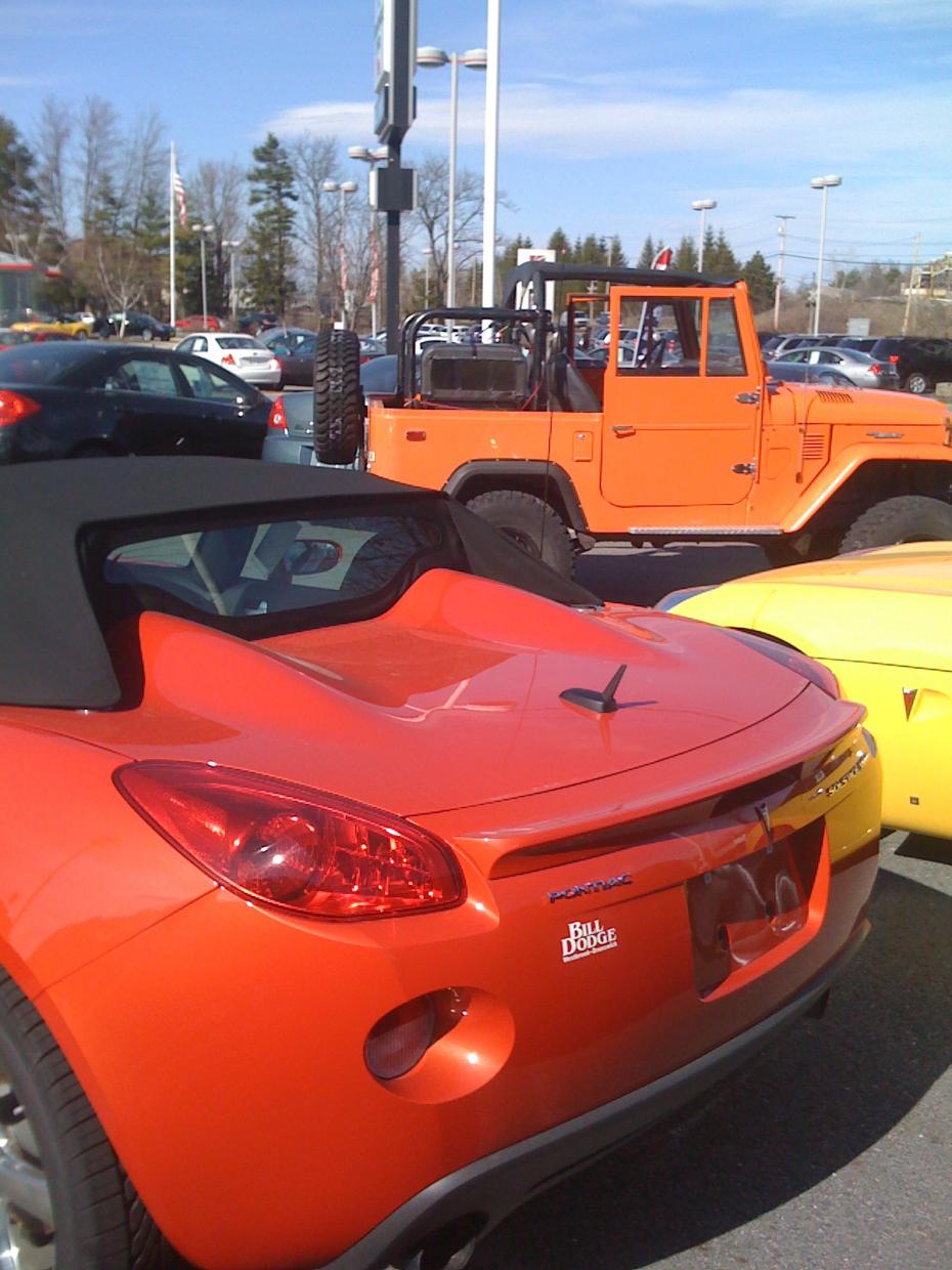 "Brazen orange" next to yellow. My Orange FJ 40 in background. The G8 orange, my FJ orange background. Direct sunlight and IOM is a Sweet color, but more of a red orange. That is I understand the "Brazen" to be like the IOM?