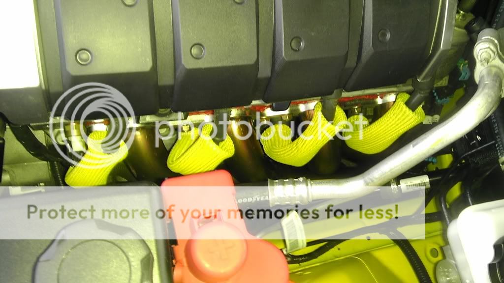 i too am running the stock wires on my kooks LTs, but i did get a set of the plug wire heat sleeves in yellow off of ebay for like $30, there was one boot that was pretty darn close to the header, mostly they are for looks, as you can see i did not go with the coating, they changed color pretty quick, like a day, lol