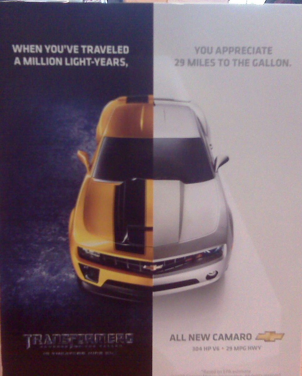 LOL, that is awesome. Michael Bay's done wonders for the Camaro's publicity.