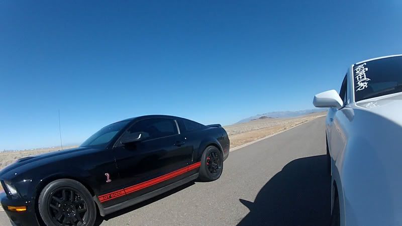 gt500' arent slow but they do have a bit of a problem putting the power down , but once they hook, they are off. it all depends on what year gt500 and what mods he has, because they can make power.