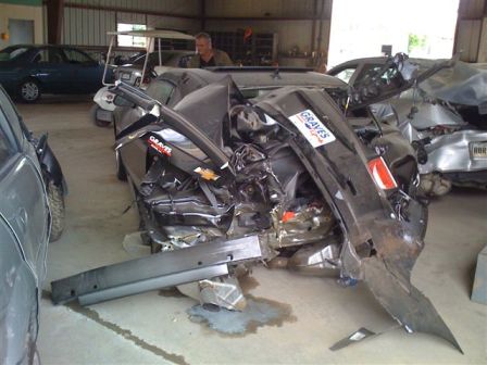 Sooooo, a Ford Exploder, er, Explorer, did that? See the following pictures, taken in the bodyshop where the car was towed to and sent along with a story: the driver hit a telephone pole, as evidenced by the lovely pole imprint in the rear. Not saying an Explorer didn't send him into a spin, but......