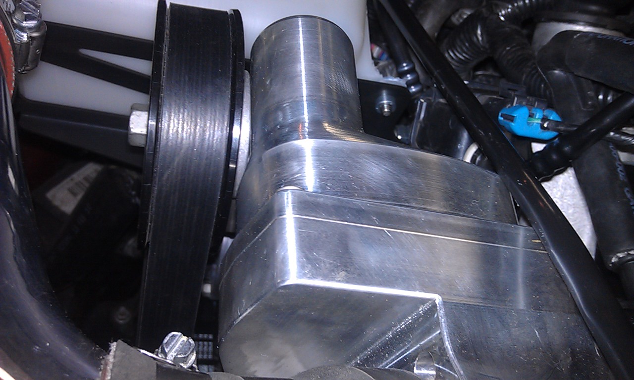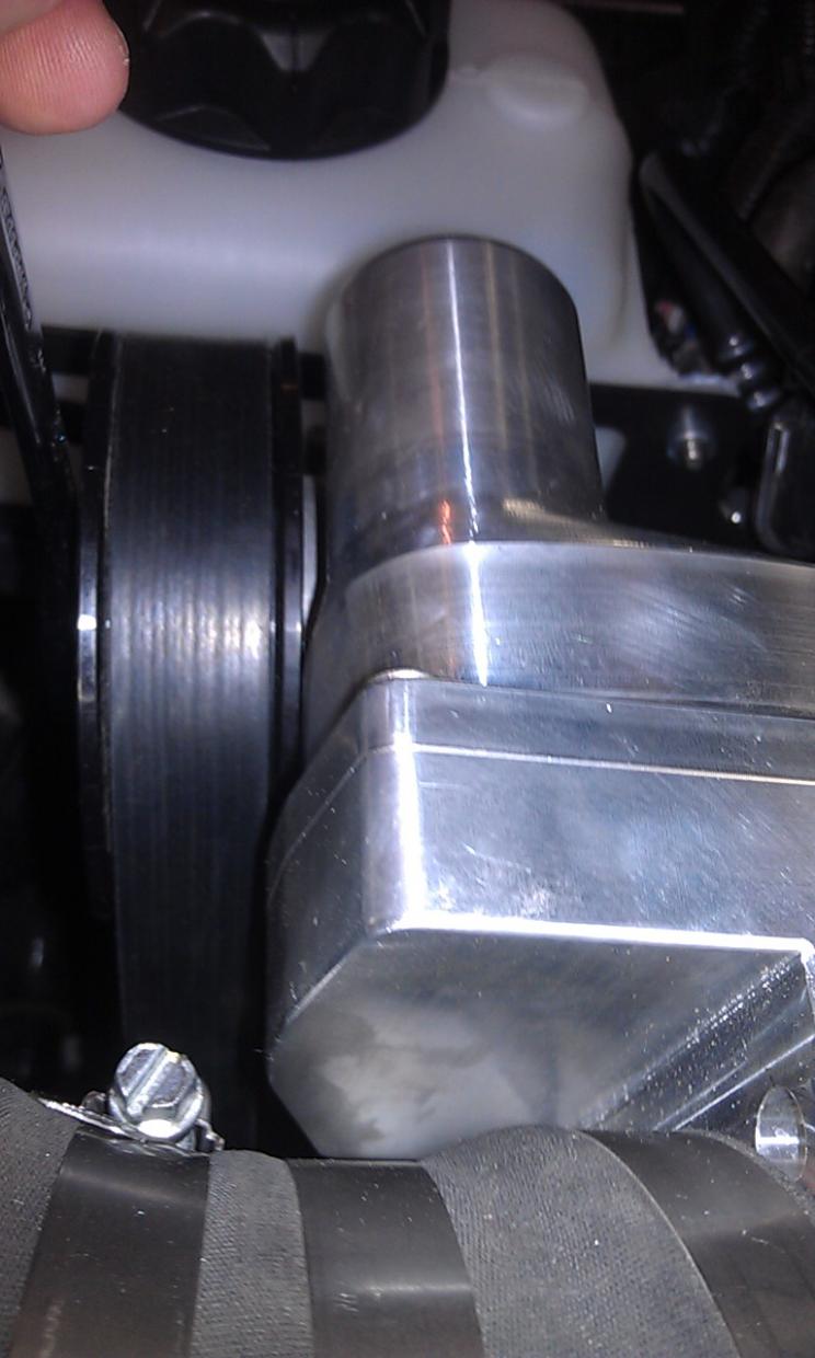 I called Comp and they gave me the dimensions and I found one that worked. There isn't much space between the pulley (idler) and the TB, but there is space, probably the thickness of a quarter or so. I never measured it. I haven't started the car yet so it might jump off but by eyeballing it, it appears to line up nicely enough. I cannot remember the thickness of the washer but it wasn't anything extreme, basically a normal thickness washer. The diameter of it was what was needed to go behind the idler pulley and the center hole big enough for the stock bolt to go through. Before I discovered I could use the stock idler, I bought the necessary belt to use the Katech idler. I couldn't remember which was which so I tried for several minutes to get the "shorter" belt on before I remembered it might be the short belt. I then grabbed the stock belt and it went right on. |