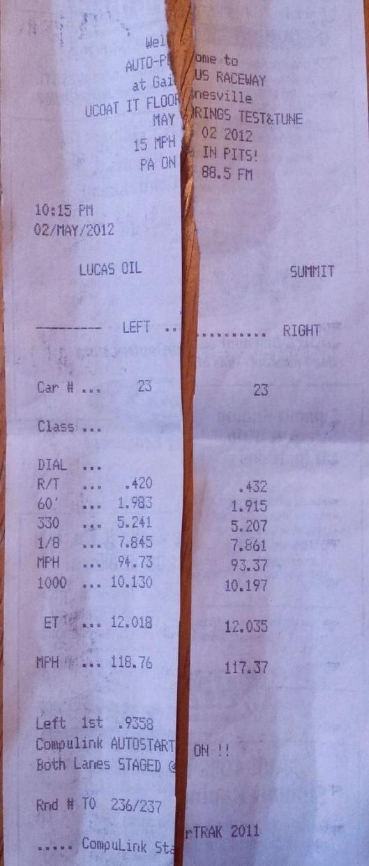 And the difference in 1/4 times is probably because they had an MT guy as well as an Ignition guy there. Or maybe he hadn't looked at the weather station for a while, and the correction decreased. Or maybe it's because they averaged two runs in opposite directions to eliminate wind. (probably one of the latter two, since ignition also reports 12.1 rather than 11.9x). If you really want to know, ask them. But there is ZERO doubt that the 1/4 times are corrected. If you know anything about drag racing you should KNOW that there's no way a Boss ran a 12.4 in a DA of 4000+. Last edited by JimmyDeanSausage; 05-05-2012 at 10:00 PM. |