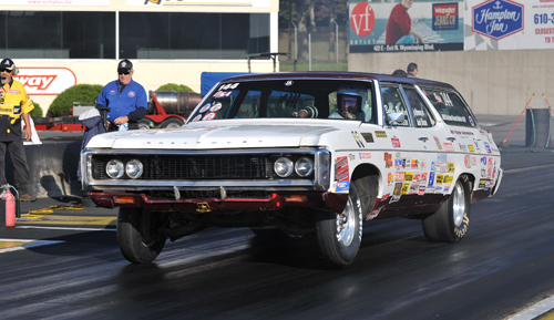 Here's an O/Stock-Automatic 350-255hp Impala Wagon...(NO transbrake!) pullin' daylite...